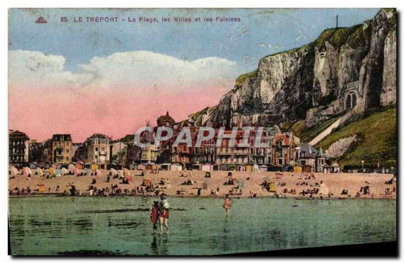 Old Postcard Le Treport The Beach Villas and Cliffs