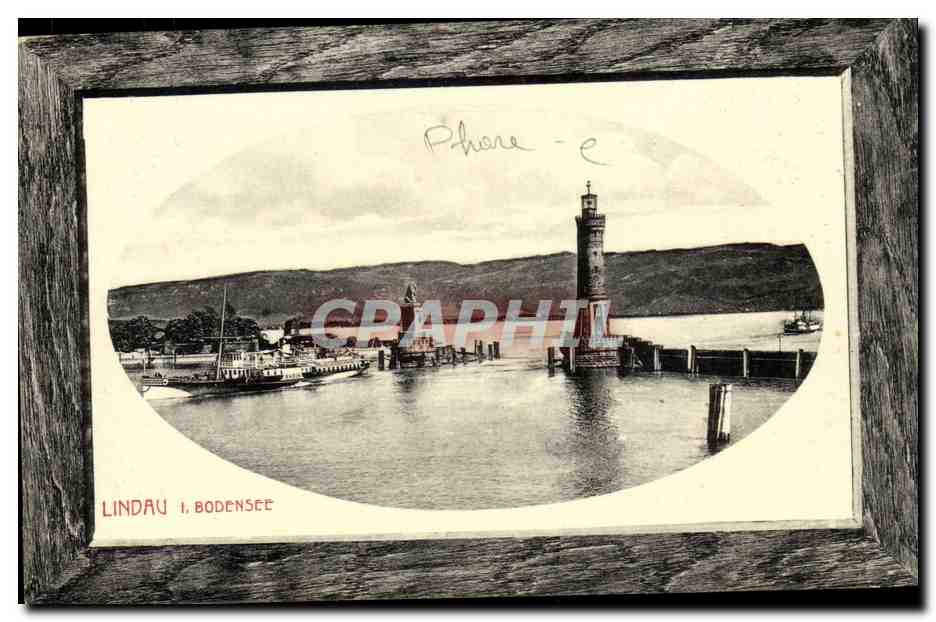 Old Postcard Lindau Bodensee (lighthouse beacon)