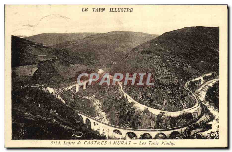 Old Postcard Line Castres Murat Three Viaducts