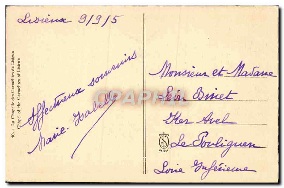 Old Postcard Lisieux Carmelite Chapel Lisieux