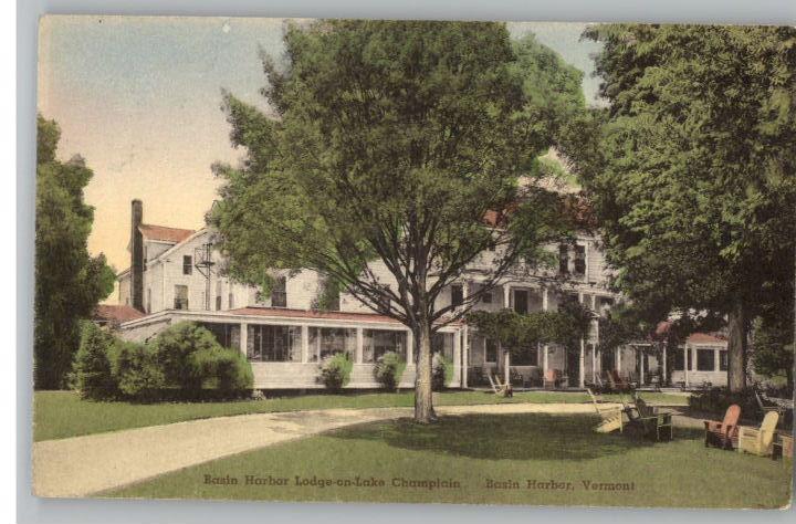 Old Postcard-Lodge-Lake Champlain-Basin Harbor,Vermont