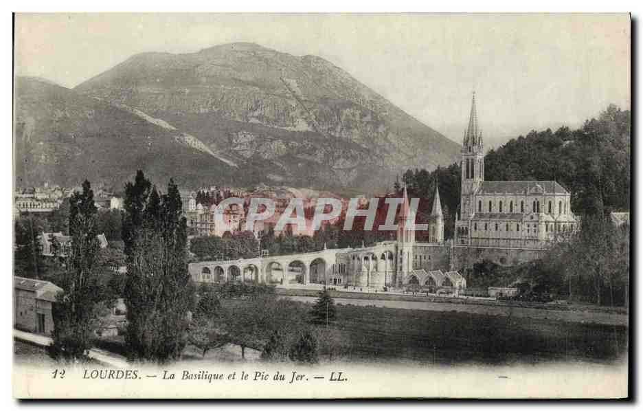 Old Postcard Lourdes Basilica and the Pic du Jer