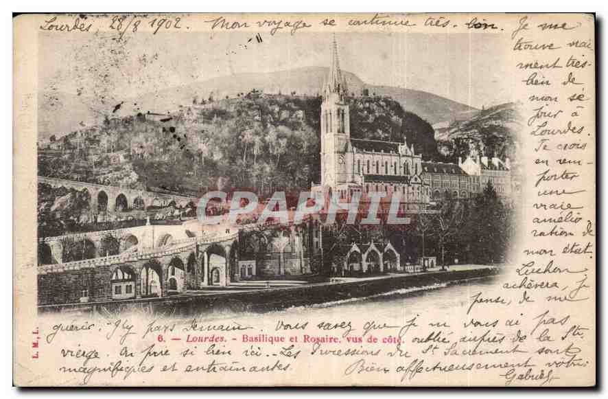 Old Postcard Lourdes Rosary Basilica and side view