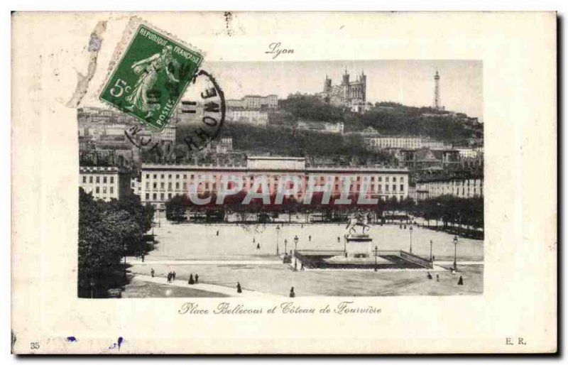 Old Postcard Lyon Bellecour Square and hill Fourviere