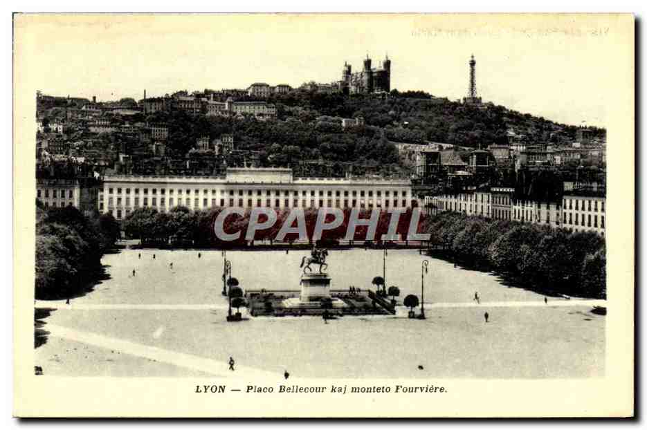 Old Postcard Lyon Bellecour Square Kaj Monteto Fourviere