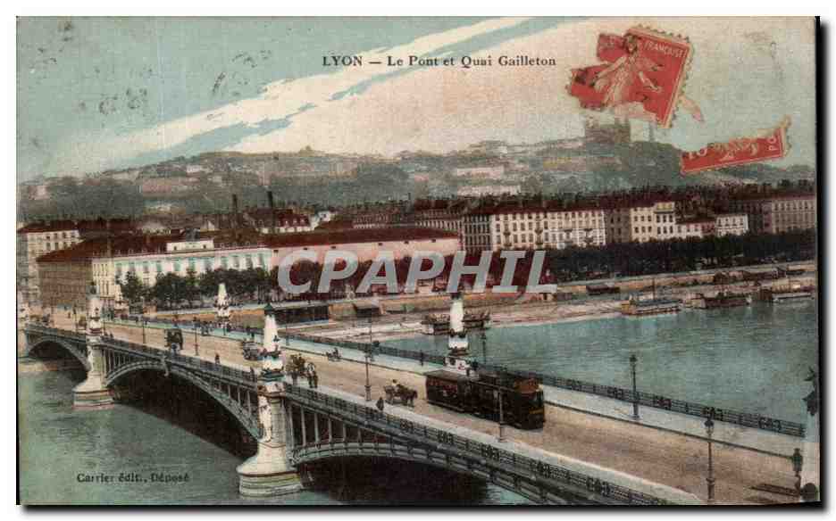 Old Postcard Lyon Bridge and Quai Gailleton