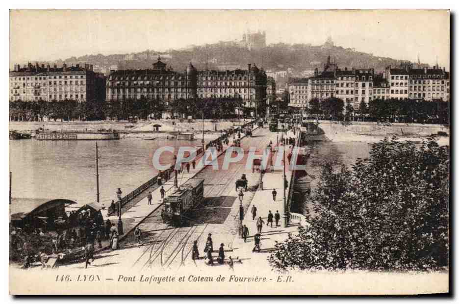 Old Postcard Lyon Pont Lafayette Coteau de Fourviere Tramway