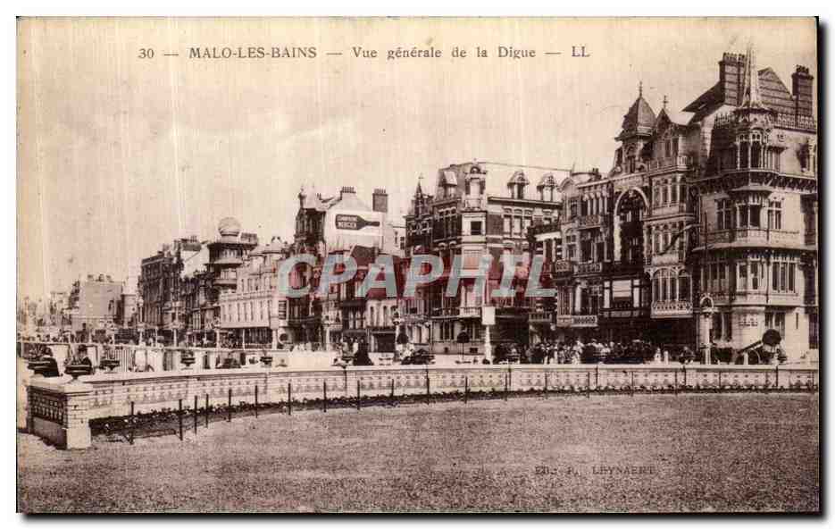 Old Postcard Malo les Bains Vue Generale de la Digue