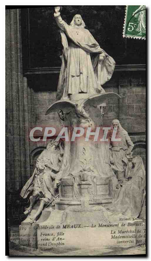 Old Postcard Meaux Cathedral Monument Bossuet