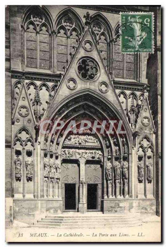 Old Postcard Meaux The Cathedral Gate Lions