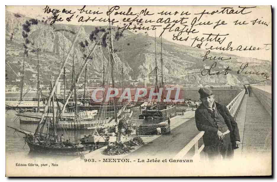 Old Postcard Menton Garavan La Jetee and Yacht Sailing
