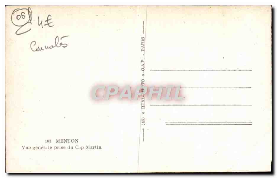 Old Postcard Menton Vue Generale Cape Jack Martin