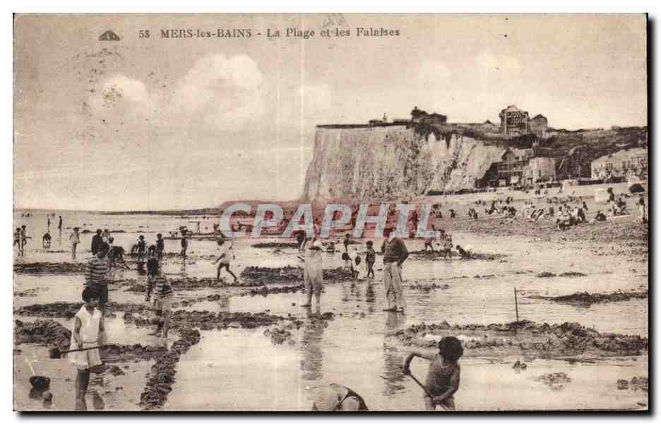 Old Postcard Mers Les Bains Beach and Cliffs