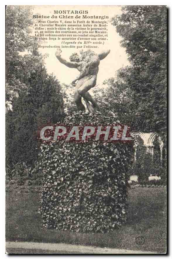 Old Postcard Montargis Dog Statue