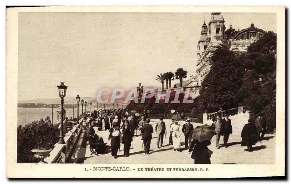 Old Postcard Monte Carlo Theater and Terraces