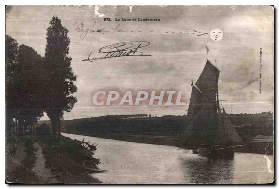 Old Postcard Moon Boat Landerneau