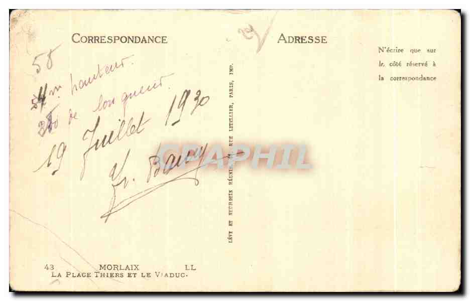 Old Postcard Morlaix Place Thiers and the Viaduct