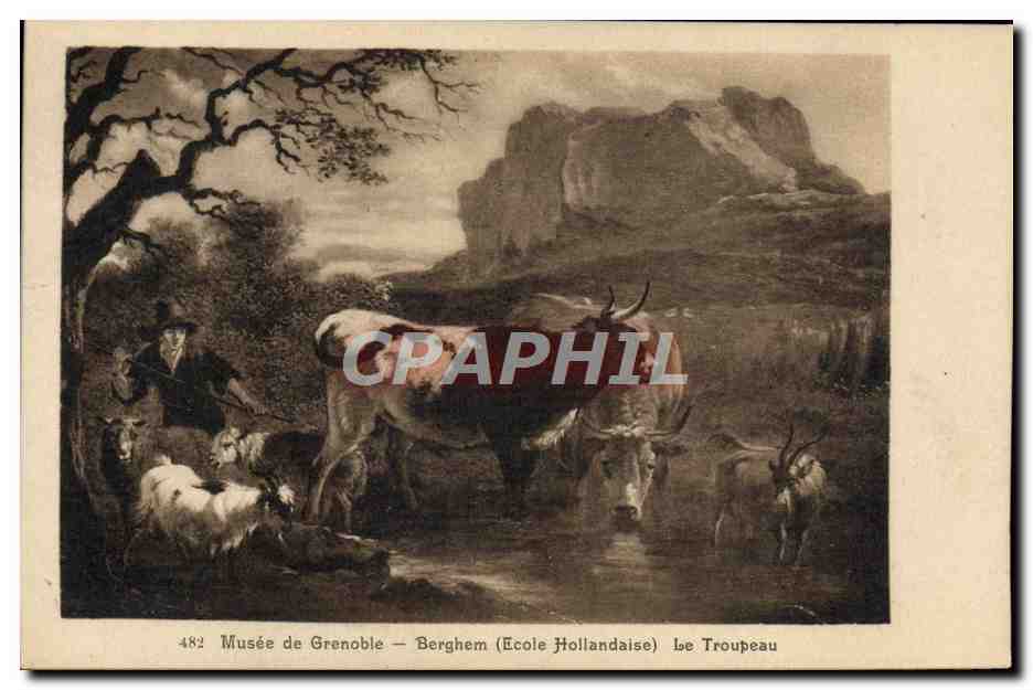 Old Postcard Musee de Grenoble Berghem The Cow herd
