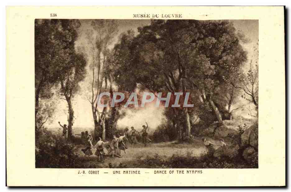 Old Postcard Musee Du Louvre Paris JB Corot A matinee