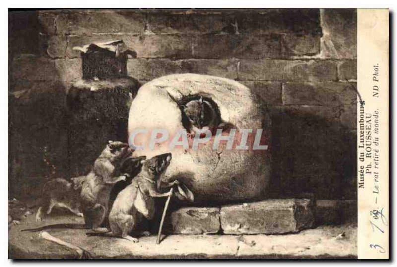 Old Postcard Musee du Luxembourg rat withdraws from the world