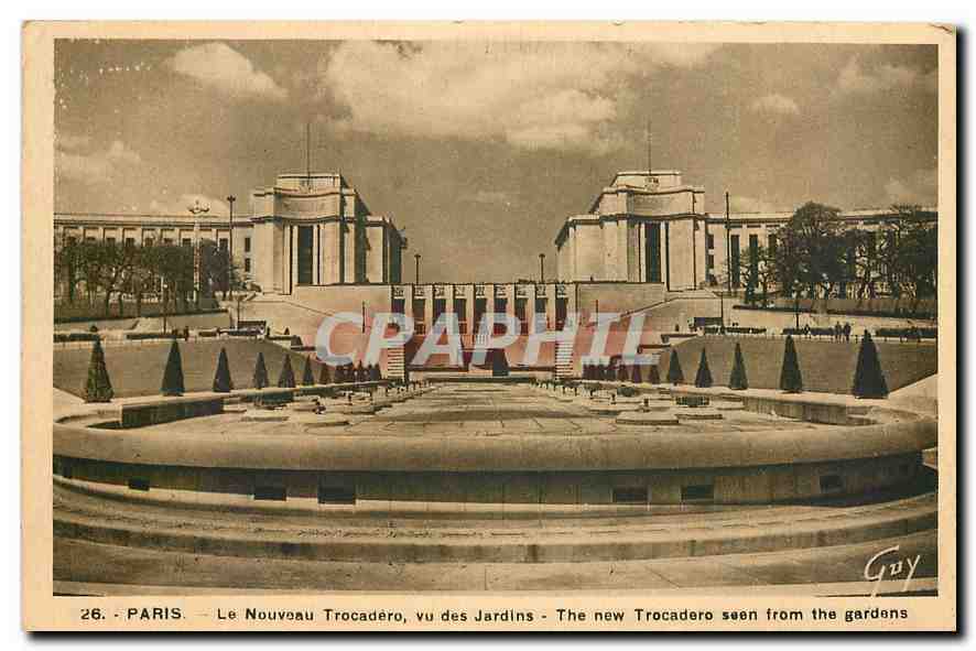 Old Postcard New Paris Trocadero gardens seen