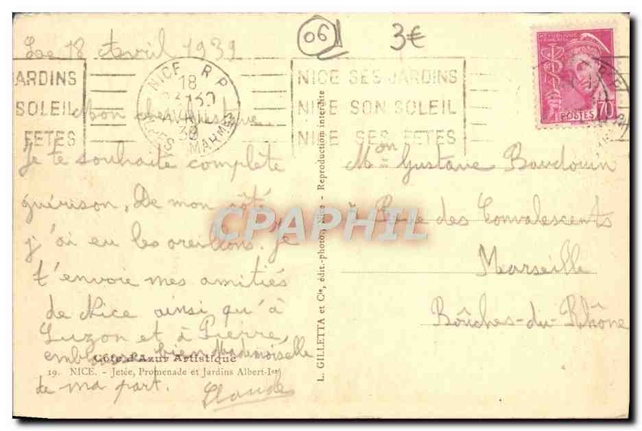 Old Postcard Nice Jetee Promenade Gardens and King Albert 1er