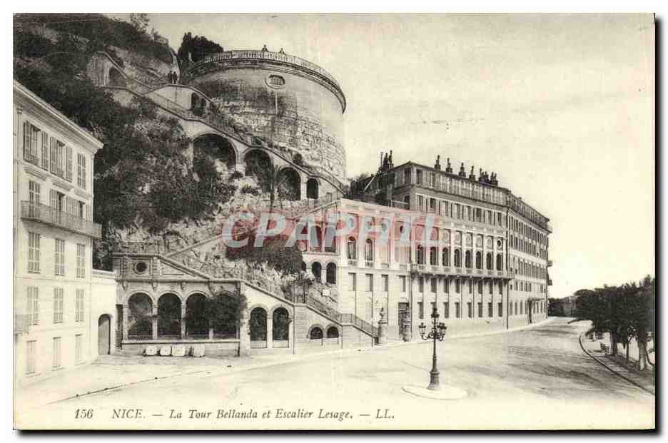 Old Postcard Nice Tower Bellanda and Staircase Lesage