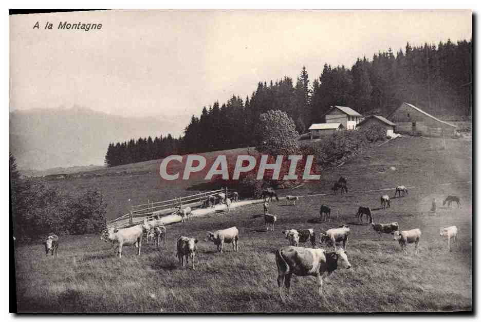 Old Postcard On The Mountain Cows
