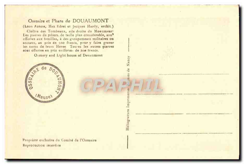 Old Postcard Ossuary Lighthouse Douamont Army