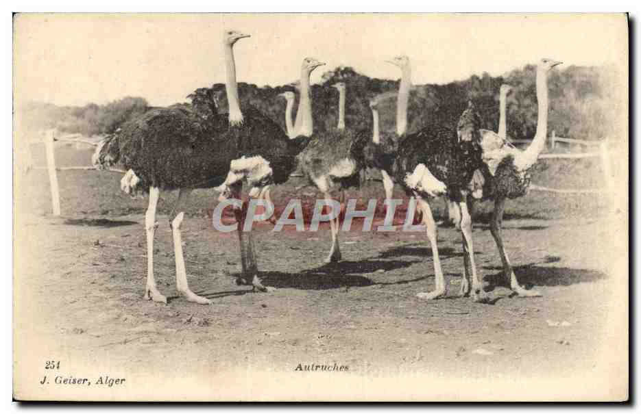 Old Postcard Ostriches