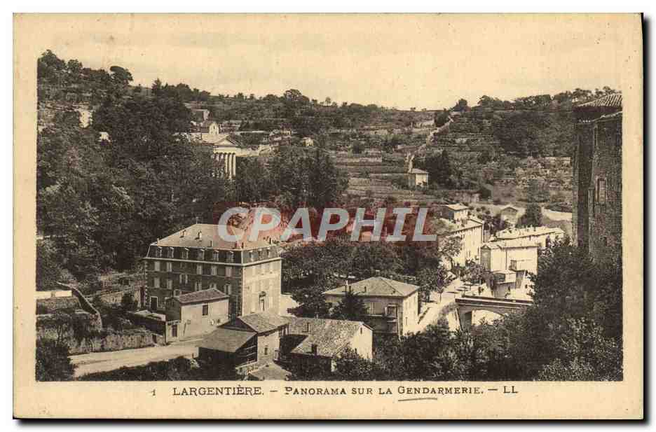 Old Postcard Panorama Largentiere gendarmerie