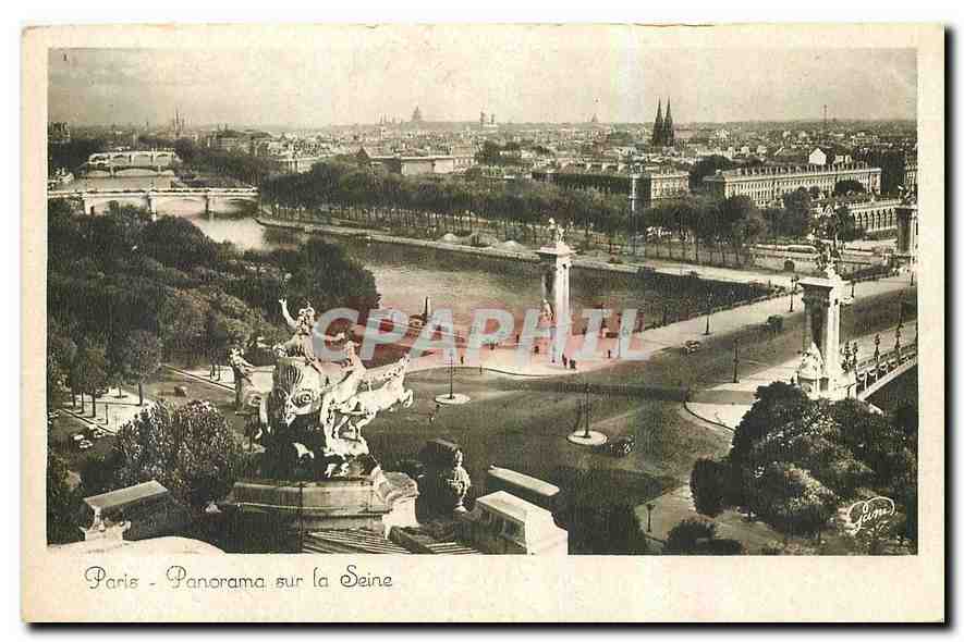 Old Postcard Panorama Paris on the Seine