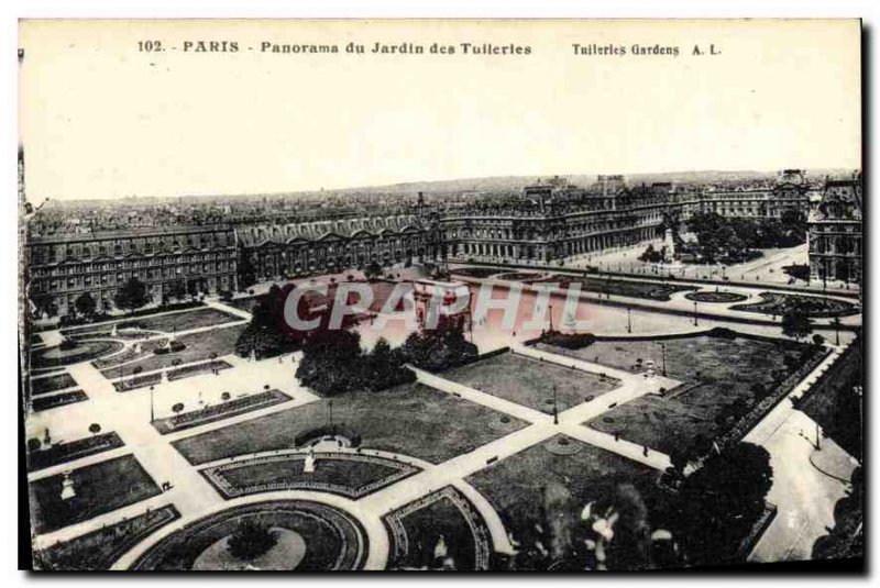 Old Postcard Panorama Paris Tuileries Garden