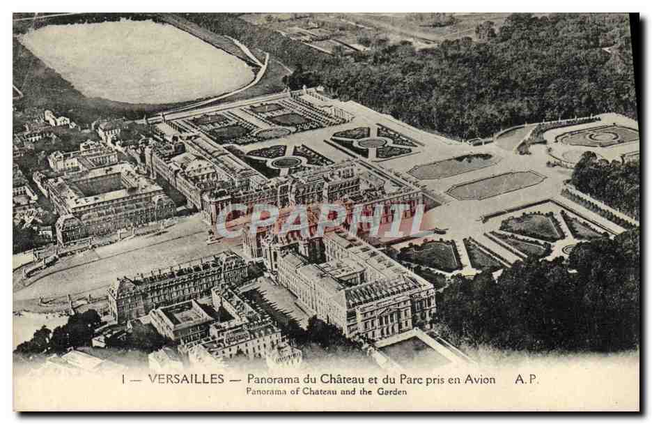 Old Postcard Panorama Versailles Chateau and Park Caught in Flight