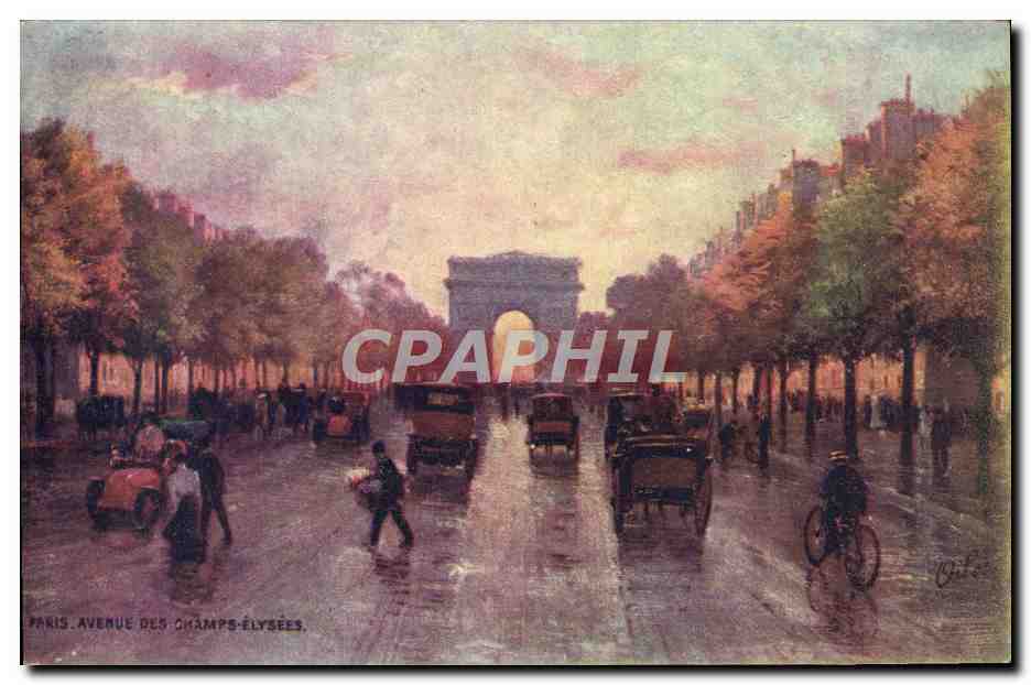 Old Postcard Paris Avenue Des Champs Elysees Arc de Triomphe