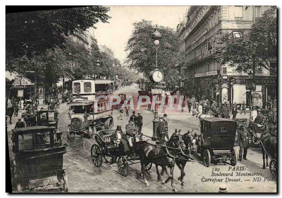 Old Postcard Paris Boulevard Montmartre Carrefour Drouot Bus