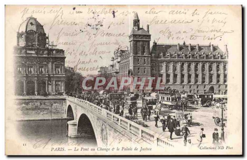 Old Postcard Paris Bridge at the exchange and the courthouse