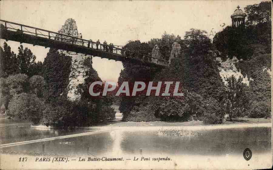 Old Postcard Paris Buttes Chaumont The Suspension Bridge