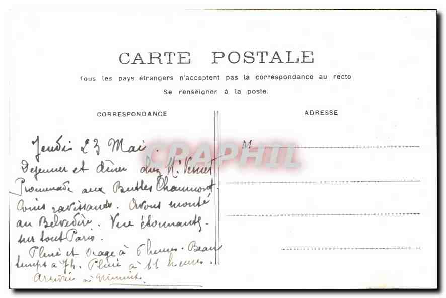 Old Postcard Paris Buttes Chaumont