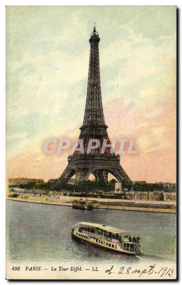 Old Postcard Paris Eiffel Tower La Peniche