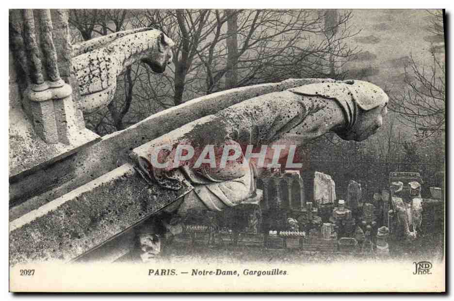 Old Postcard Paris Gargoyles Notre Dame
