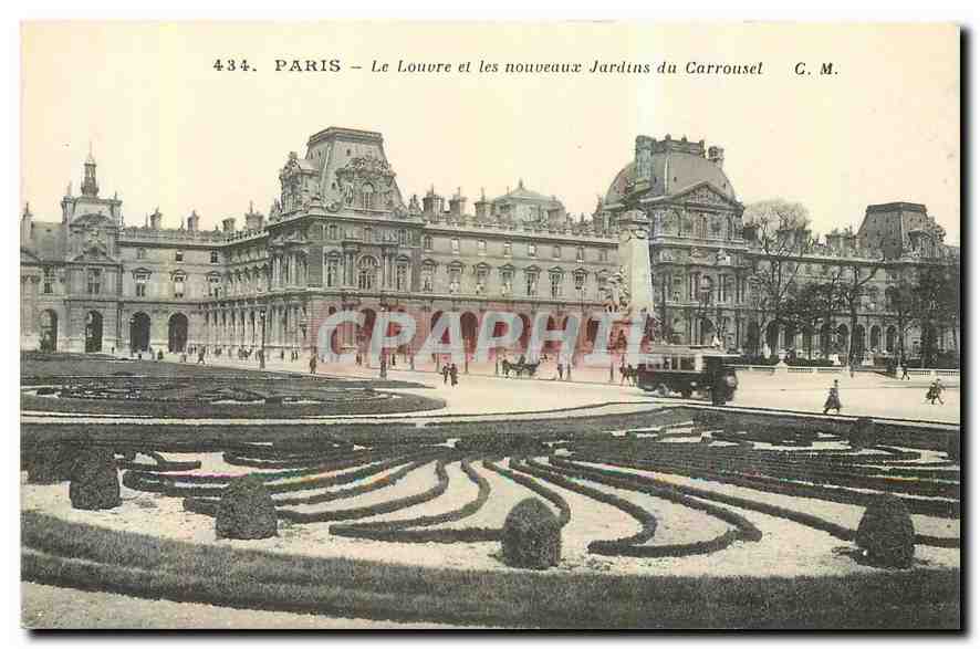 Old Postcard Paris Louvre and the New Gardens Carousel
