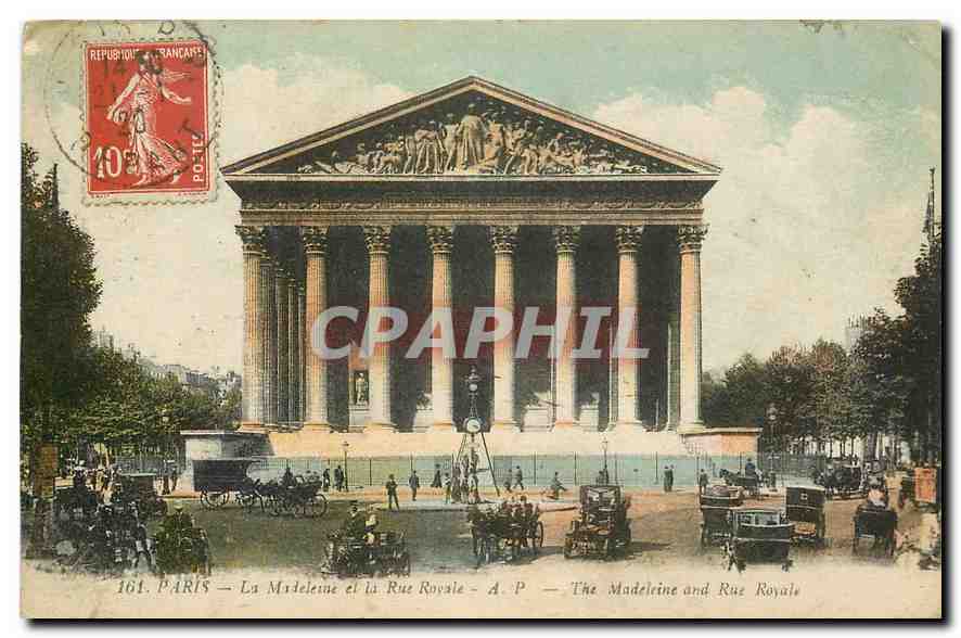 Old Postcard Paris Madeleine and Rue Royale
