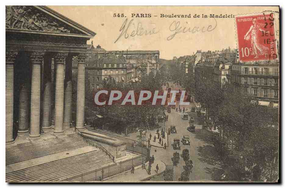 Old Postcard Paris Madeleine Boulevard