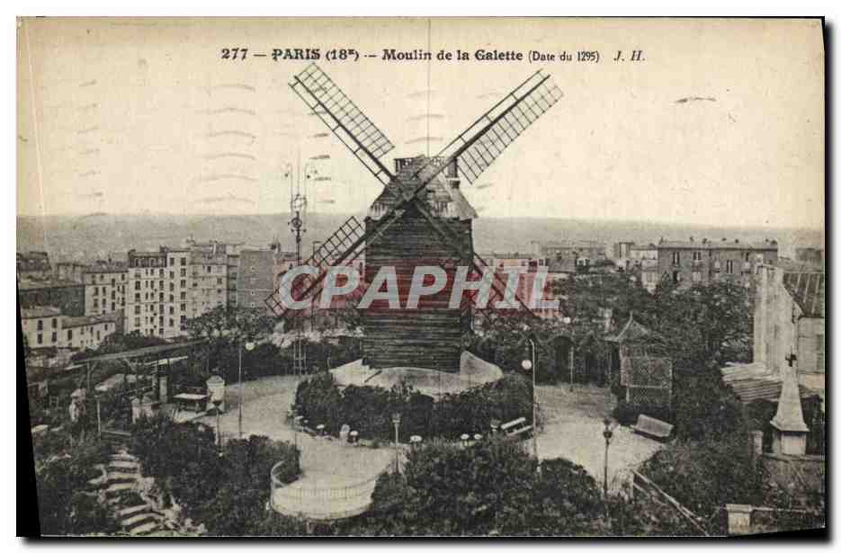 Old Postcard Paris Moulin de la Galette