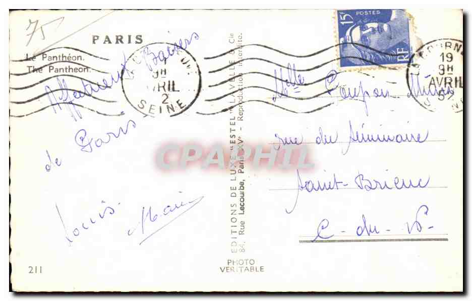 Old Postcard Paris Pantheon