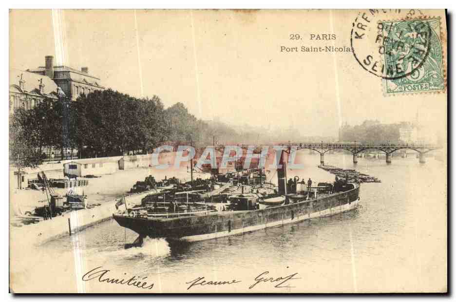 Old Postcard Paris Port Saint Nicolas Boat