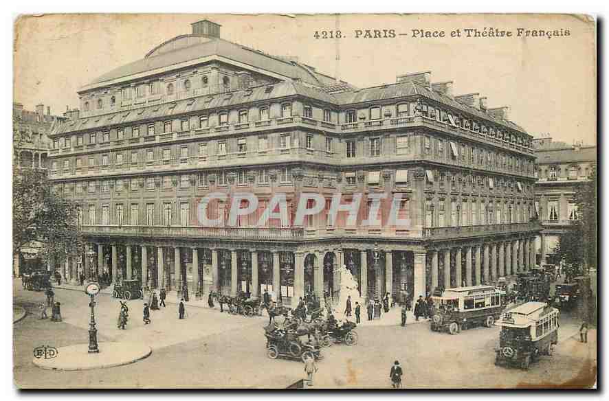 Old Postcard Paris Square and French Theater