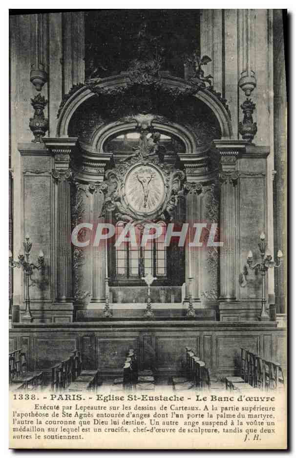 Old Postcard Paris St Eustache Church Bench D & # 39Oeuvre