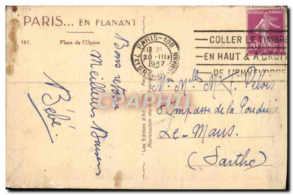 Old Postcard Paris Strolling Place De I & # 39Opera